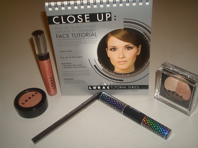 Lorac's Close Up: Real Life to Red Carpet Natural to Dramatic Face Tutorial is amazing. The price point is a low $39 smackeroos and comes with some of their best selling products. It's $120 value and here's what you get: Starry Eyed Baked Eye Shadow Trio in LORACstar, Front Of The Line PRO Liquid Eyeliner in Black, Multiplex 3D Lashes in Black, Blush in Soul, Couture Shine Liquid Lipstick in Trend Setter and a Face Tutorial Booklet with removable instructions that cling to your mirror. Isn't that bananas? I know! It's a definite MUST-HAVE.
